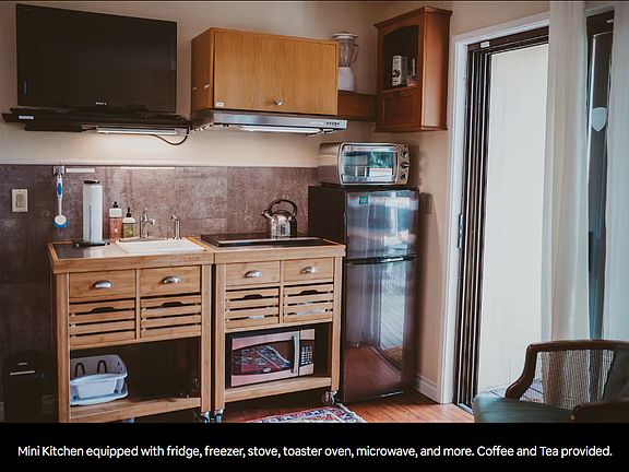 - Exterior features: Fruit trees and seasonal veggies, Garbage included in rent, Internet included in rent, Utilities included in rent, Walking path to riverfront, Water included in rent