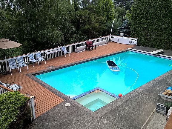 The original Washington estate of famed Portland developer Thomas P Moyer, this architect-designed, Tuscan-influenced 5600 sq ft Northwest-styled home in Vancouver's most desired neighborhood has been thoroughly renovated over the last three years and is in outstanding condition. A long, private driveway leads to the dramatic entryway, which flows to a huge, high-ceiling living room with fantastic river views. The 1200 sq ft master suite includes his and her separate cedar-lined closets and bathrooms, also with great river views, skylighted shower and jetted tub plus private deck. Separate additional private decks are part of the upstairs and downstairs guest bedrooms, and a huge, high-ceiling covered deck leads from sliding-glass doors in the remodeled kitchen and family room areas. Extensive double-paned glass floor-to-ceiling windows on south side of house bring in the sun and great river and airport views. The kitchen features poured-in-place concrete counters and custom travertine backsplash, and Jenn-air and Subzero appliances. Heating and air-conditioning is handled by two commercial duty water-exchange FHP heat pumps. There's a separate 800 SqFt ADU on the lower level,and a 1200 sq ft heated and fully enclosed garage & shop building with its own bathroom. In addition to city water, the property includes a private hi-velocity well. This property features an in-ground 20x40 solar-heated swimming pool with all-new filter and pump equipment, and a full-size tennis court. It could not be duplicated today for under $2M.