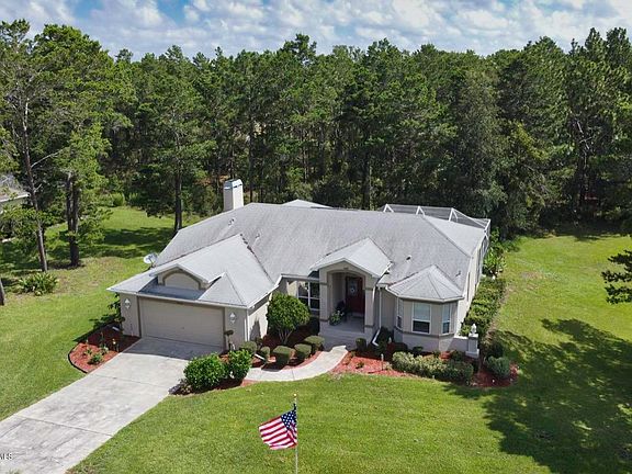 Located in the beautiful Community of Woodland Waters with a total 1 acre, private land. Enter the home thru the double door entry, step down into the living room with sliding doors to the lanai/ screened pool area. Formal Dining Room currently used as a study. Large kitchen with plenty of counter space and cupboards. Breakfast bar and nook overlooking the pool area. Family room, currently used as Formal Dining complete with wood fireplace. Split plan with 2 bedrooms and full bath also used as the pool bath. Master bedroom with master bathroom complete with jetted garden tub. Enjoy the screened lanai / pool area with heated pool. New roof 2008. New drain field.