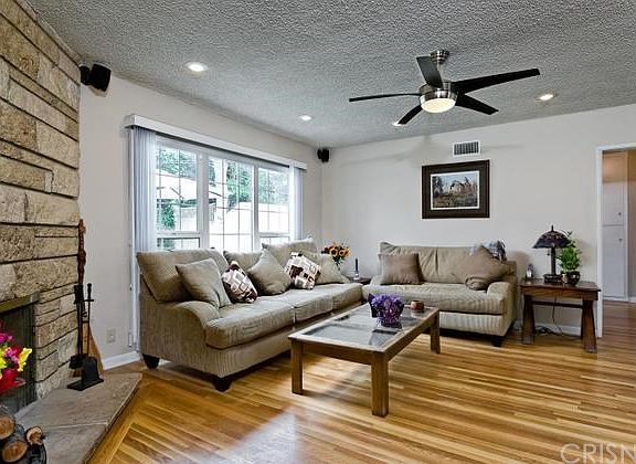 GORGEOUS CURB APPEAL, on quiet side street. Located in a highly desirable neighborhood of Northridge. This 3 bedroom, 1.75 bath home boasts an open floor plan with multiple amenities including: a large living room with a floor to ceiling stone fireplace, a formal dining room, oak hardwood floors throughout living room, dining room and hallway, light and bright kitchen, utility room with washer and dryer hookups. The backyard is perfect for entertaining a large group of family & friends featuring a covered patio and a large grass area. Central heating and central air conditioning. All you need is your furniture!