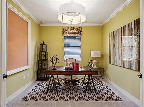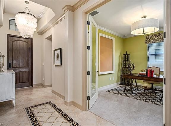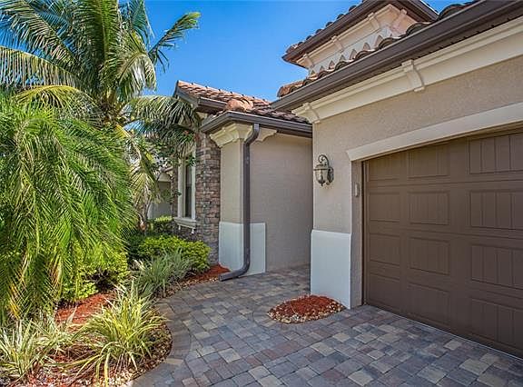 3 bed 3 bath and a den 2,052 square feet 2 car garage former model golf bundled fully furnished Sophia floor plan with a pool, spa and summer kitchen walking distance to the amenities! This home is loaded with upgrades and high-end furniture. Island kitchen with 42" cabinets with crown molding, custom millwork throughout, shaddow boxes on the walls in the living rom, board and batten walls in the spare, coffered cielings, trey ceilngs, beautiful crown molding, walk-in pantry, tile on diagonal with carpet in the bedrooms, 8 foot formal doors and french doors in the den, granite counters and a wood plank ceiling in the lanai. Great room design with the kitchen overlooking the dining and living area. The master suite has a walk-in shower and a tub with custom built-in cabinets in the walk-in closet. The spare bedrooms have thier own wing of the house and bathrooms to accomodate your guests. Treviso Bay has some of the best amenities in Naples with 8 clay tennis courts with a professional staff, a full service gym and aerobics with a professional staff, a 50,000 square foot clubhouse, bundeld golf, beautiful walking paths and a boardwalk through the preserve. Available to show today!