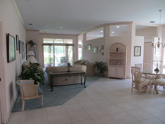Gorgeous Meadowood Golf Community! On the golf course. Expanded floor plan with high ceilings, clerestory windows and incredible golf course views. Have you been dreaming about relocating to sunny Florida? This home feels super spacious with an open floor plan and tons of natural light. With a huge master bedroom with large ensuite bath, large closets in every bedroom and the most peaceful setting you could ever imagine, this could be the one. The kitchen opens to a lovely eat in area overlooking the golf course and even includes a pantry closet with loads of shelves for ample storage. Roof 2021, HVAC 2024. HOA provides excellent value with a manned security gate, cable, wifi and water included. The enormous, screened lanai provides plenty of space for grilling and outdoor enjoyment.