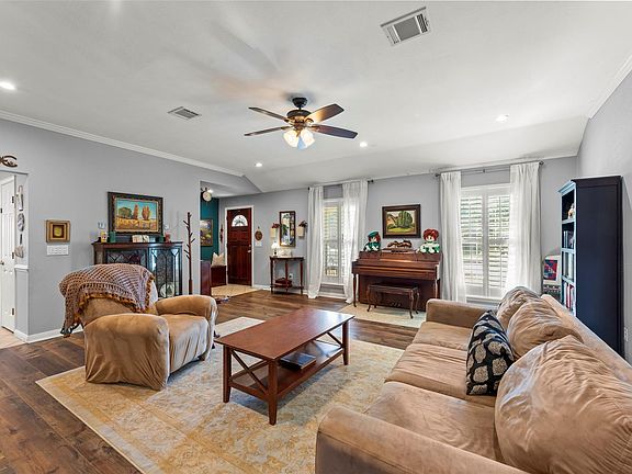 Cozy fireplaceUpdated guest bathroomLarge backyardFormal dining roomQuartz countertopsLarge kitchenCustom cabinetry