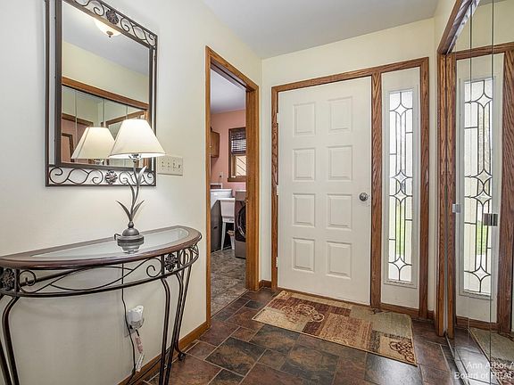 Open House Sunday, April 23rd from 2-4. Custom built 4Bd/2.5Ba home nestled on 4.3 private acres with a pond and lake to enjoy. Beautiful gourmet chef's kitchen a waterfall backsplash, granite countertops and stainless appliances. Primary suite on the entry level has an attached bath which leads to an indoor hot tub overlooking gorgeous views of nature and the pond. The main floor has two more bedrooms and another full bath and powder room. Spectacular heated sunroom with a lovely Heat N Glo gas fireplace. The ground floor has a wet bar/kitchenette area, an additional bedroom, a cozy movie room/rec room, a room plumbed for an additional bathroom, and lots of storage. Wonderful tree house feeling perched on the hillside with lots of daylight and views of the lake and pond. Wonderful wor workshop/storage space with a garage door off of the pond side of the home. New Furnace 2018, New Softener 2021, New Roof 2019, New Hardwood Floor 2018., Rec Room: Finished