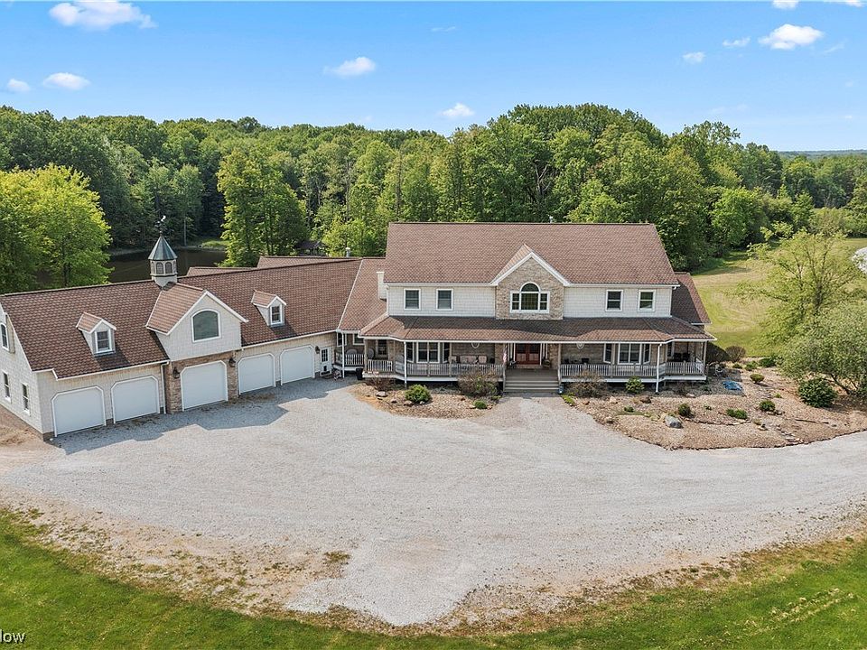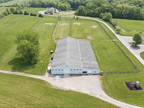 Welcome to this one of a kind property in Geauga County. 3 miles from Chardon Square. This home features 5-6 bedrooms, 5 full baths, a large eat-in kitchen with a large pantry, and loads of storage. Large great room with built-ins and gas fireplace that leads out to a large Trex deck overlooking a 24x40 inground pool, sun room, formal dining area with beautiful hardwood & tray ceilings, first-floor master suite with large sitting area, built-in window seats, and 2 large walk-in closets. Also an office on the first floor and/or 6th bedroom. This home also features a large first-floor playroom/media room. 2 story foyer leads up to another 4 large bedrooms. The 15-course finished basement features a full bath & kitchen, bar, and workout room. The entire first floor of the home has heated floors.(hydronic heating system). The outside features a farmhouse, a 74X194 arena, a stable, a bank barn and pole barn, 2 ponds, and trails. 5-car garage,+additional 2 car garage on lower level. A large workshop. This is a turnkey one of a kind property and is also directly located across from a 600+ acre park. Over 125,000 of equipment will remain with the property. 108 acres total. A must see!