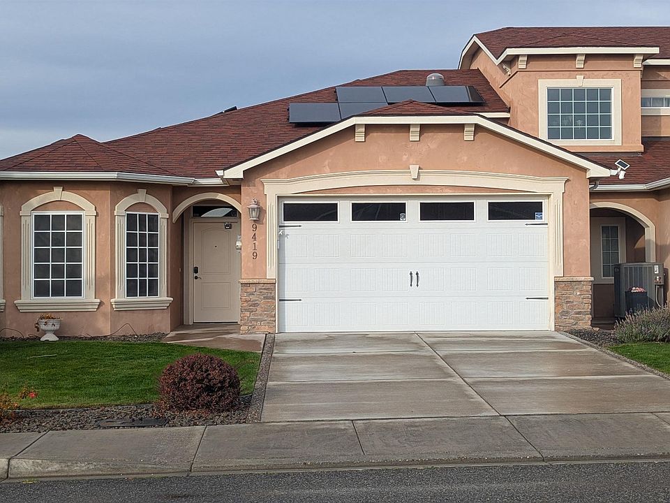 Designed for the Way You Want to Live Welcome to Mediterranean Villas - a sought-after community created for those who’ve traded weekend chores for weekend getaways, and yard work for peace of mind. This elegant single-level corner lot townhome offers 3 bedrooms, 2 baths, and 1,803 square feet of effortless living, designed for comfort, connection, and convenience. Every inch feels intentional—from the tile-floored entryway that greets you with light to the vaulted ceilings that open the space and calm the soul. At the heart of the home, the great room unites the kitchen, dining, and living areas into one seamless flow. The granite-topped island features an overhang for barstool seating, perfect for casual meals, morning coffee, or sharing wine with friends. A gas fireplace adds warmth and ambiance, while dual pantry doors and a discreet appliance garage keep the kitchen beautifully functional. Slide open the doors to your covered patio, where low-maintenance living meets open-air serenity. Because the grounds are maintained by the HOA, you’ll spend more time enjoying life - and less time managing it. Practical luxuries include a walk-in bathtub, attached two-car garage, owned solar panels for energy efficiency, and granite finishes that add timeless sophistication. Whether you’re right-sizing, simplifying, or simply ready to live with intention, this home offers a life that feels as effortless as it looks. At a Glance 3 Bedrooms | 2 Bathrooms | 1,803 sq. ft. Single-level corner lot townhome with vaulted ceilings Granite countertops, dual pantry doors & appliance garage Kitchen island with bar seating — perfect for entertaining Great room with gas fireplace & covered patio HOA-maintained exterior and landscaping Walk-in bathtub | Attached 2-car garage | Owned solar panels For the love of home—and the freedom to live life on your terms—welcome to Mediterranean Villas.