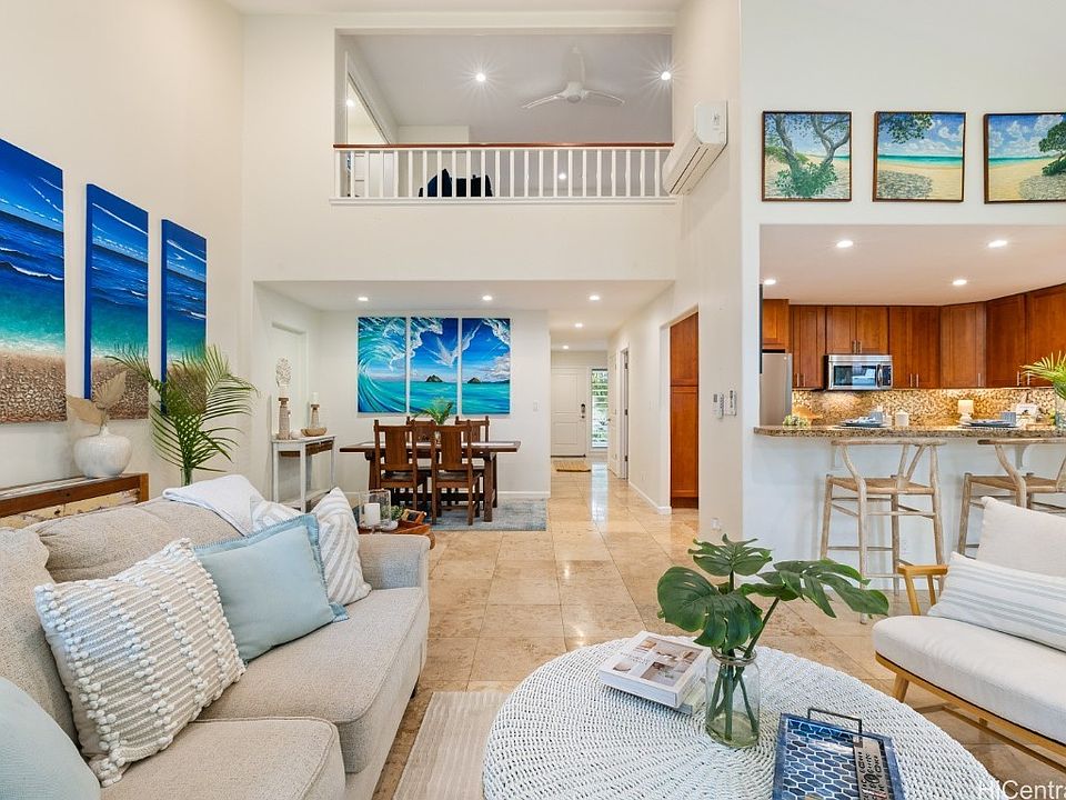 Incredible 2014 built Kailua home on quiet street, this attached single-family home features 4 bed/3 bath, & 2 car garage with gated entrance. Just minutes from Kailua beach while still enjoying a quiet loop! Inside you are greeted by a spacious entry that leads through to an open concept living space surrounded by luscious landscaping. Soaring vaulted ceilings look towards the loft above. Split AC and new fans keep the home breezy throughout. The kitchen includes ss appliances and bar seating, incl. a pass through window. Step outside to a fully fenced yard and covered lanai w/bar, hot tub & water fountain - a private oasis! Laundry room w/sink on ground floor along with 1 bedroom & full bath. Head up the stairs to a loft with built-in desk area perfect for homework or a work from home station. The spacious primary suite is truly serene w/vaulted ceilings, mountain views, walk-in closet and twin sinks. The 2 upstairs bedrooms and final full bath feature fantastic mountain views. A quick stroll to Kaha park where you’ll find exercise for you and your pets with a dog park and long paved trail across the marsh. Close to the Marine Corps Base, freeways, beaches, eateries & shopping!