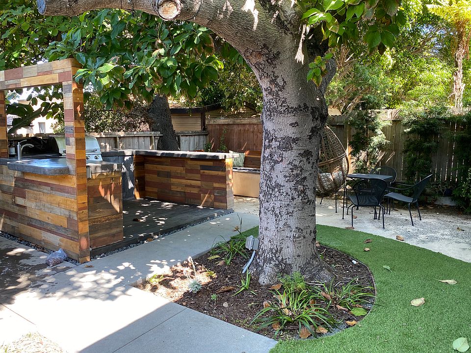 Fully fenced yardStainless appliancesOutdoor kitchenOriginal touchesWall mounted tvRemodeled private studioQueen size bed