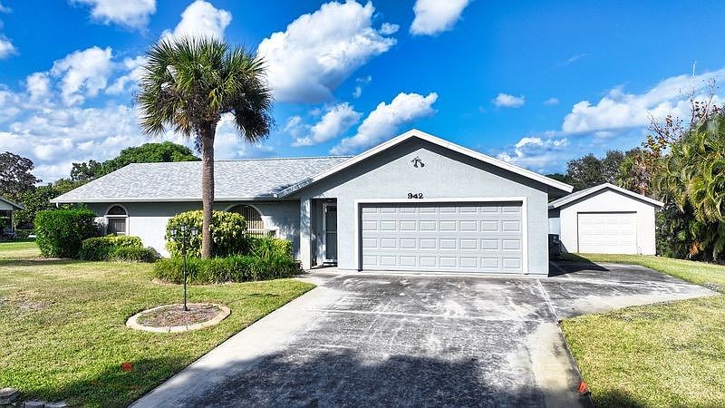 Discover the potential in this 3BR/2BA home on an oversized lot! Offering 1,652 sq. ft., new laminate flooring, stainless appliances, central vac, generator wiring, a 2 car garage plus a detached garage. Solid bones-just needs some cosmetic updates. Enjoy a large patio, 2025 roof, 2022 AC, and 2015 water heater. Minutes to the Indian River, beaches, schools, and shopping. Room sizes subject to error.