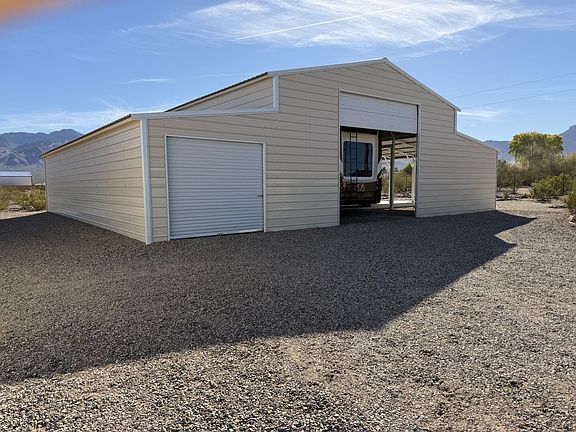 Shop, Covered RV Parking, Storage and more in Scenic AZ: You have finally found it!! 1.01 acre fully fenced, all utilities on paved road in Scenic AZ. Amazing property consists of a 20'x30' metal shop with electricity. 40' sea container box (connex box). Covered and enclosed RV parking area which has two 14 ft. overhead doors with pull thru capability. A large wooden deck with pull out stairs allows you to enjoy additional covered outdoor space with amazing mountain views. There is also a 12'x50' enclosed garage space. Also included is a 2015 Houston 5th wheel RV with 4 slides in great shape. Owners meticulously maintained much of the natural landscape with additional plants on drip system. Everything mentioned is included in the sale. Why sit through another long cold winter when you can enjoy sunny great weather with easy access to millions of acres of public land for your exploring. Only minutes from Mesquite NV with all the casino gaming and golf you can ask for.