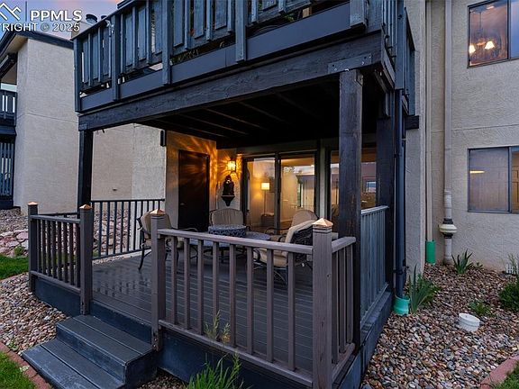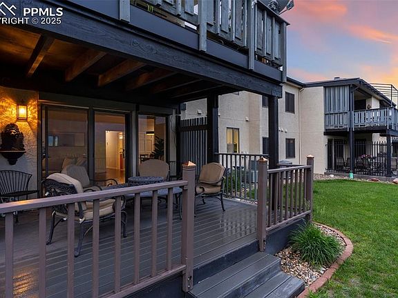 Welcome to one of the best views in all of Colorado Springs—right from your own covered, partially enclosed deck. From this ground-level condo, you’ll take in sweeping vistas of Pikes Peak, Garden of the Gods, and the full Front Range, whether you're sipping your morning coffee or enjoying a sunset glass of wine. Inside, this beautifully updated 3-bedroom, 2-bath home offers main-level living with an open layout perfect for both relaxing and entertaining. The spacious great room flows seamlessly to the deck, making the mountain views a daily backdrop. The kitchen is thoughtfully upgraded with newer cabinetry, backsplash, granite countertops, a gas range, and stainless steel appliances. The primary suite feels like a retreat, complete with a private bath featuring dual sinks and granite counters, plus generous closet space. Two additional bedrooms on the main level give you flexibility—one even has charming wainscoting and makes a great office or guest space. Villa Sierra is a gated, well-maintained community with 24-hour security, a pool, tennis courts, and all the extras taken care of—water, trash, snow removal, lawn care, and building insurance are all included in the HOA. Just minutes to hiking and biking trails, dining, shopping, and easy access to I-25. Don’t miss this rare opportunity to own a home with views that truly take your breath away.