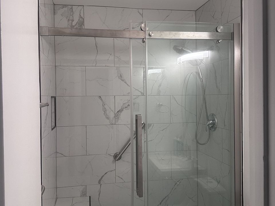 Every bathroom has been completely transformed into a private spa retreat with marble tile flooring, stone accents, OVO sliding shower doors, and a marble-tiled shower with built-in bench. Enjoy the luxury of LED lighting for a customizable spa ambiance and a Bluetooth speaker connection for audio relaxation.