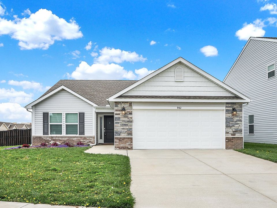 This immaculate single level home feels like brand new. Featuring, 3 bedrooms, 2 full bathrooms, den/office, 2 car garage and 1730 sq. ft. of living space, this home will have everything on your wish list. The living room includes soaring vaulted ceilings, vinyl plank flooring and is open to the kitchen/dining room, making it perfect for entertaining. The kitchen features upgraded countertops, pantry, stainless steel appliances, island and beautiful gray cabinetry. The owner's suite includes a full bathroom w/ shower. linen closet and double bowl vanity. Outside, you will enjoy the patio and spacious fenced backyard. This home is clean, comfortable and move in ready. Set up a tour today!