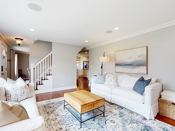 Welcome to 942 Queens - a super-rare, fully-renovated home tucked away in the coveted Glen Oak Acres neighborhood in East Glenview. This understated yet elegant, 4-bedroom home, lovingly gut-renovated from top to bottom in 2017, exudes charm and style. The main floor offers a tranquil living room with loads of sunshine from the XL South-facing picture window, charming built-in shelving, and a focal-point fireplace. The new kitchen has loads of white cabinetry, quartz countertops, stainless-steel appliances, custom island with seating, and herringbone tile backsplash. The kitchen overlooks the spacious family room addition with loads of windows and cozy heated floors. The first floor also offers a formal dining room, bedroom#4/office, and full bath. Upstairs you'll find three charming, stylish bedrooms, all with custom built-in closets, and one full bath. The lower level includes a rec room and XL laundry room with insane storage. Renovation and recent updates include a new tear-off roof, new siding, new windows, new kitchen and baths, new garage, new brick-paver patio entertaining area (with gas line to grill and firepit), new front hardscaping, new driveway, new fence. Seriously, can I say "new" again? Located on a quiet dead-end street in award-winning school districts 34 (Lyon, Pleasant Ridge, Attea) & 225 (Glenbrook South). This a one rare offering!