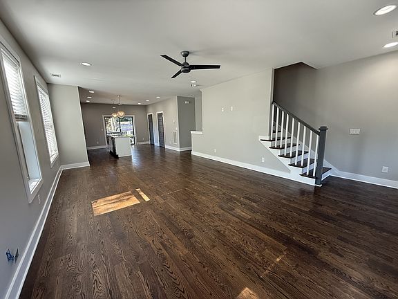 The kitchen is designed with a large island, ample cabinet space, and plenty of counter roomideal for cooking, hosting, or gathering with friends. The open living areas feature hardwood flooring and large windows that bring in an abundance of natural light.