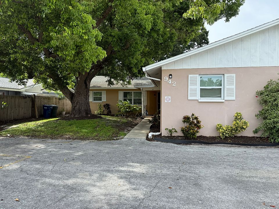 This 2 bed, 1 Bath is in a great location, extremely close to downtown Dunedin and the Pinellas Trail. The Apartment is part of a quiet, safe and comfortable tri-plex. Beautiful newer kitchen, granite counter-tops, new appliances. Fresh paint throughout the unit. New windows. Newer Central AC Unit. Washer/dryer included in private utility room. Central air, covered side patio, two parking spaces included.