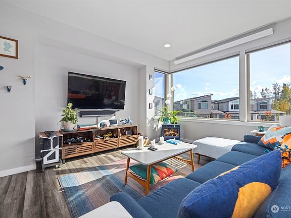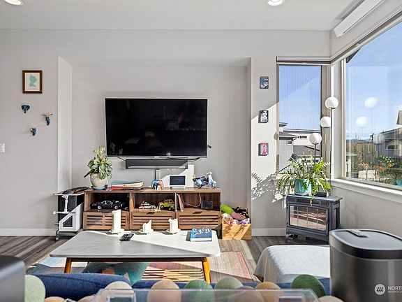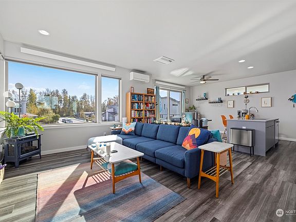 This modern 3-bedroom, 2.25-bath home in Bellingham blends Pacific Northwest charm with eco-friendly features. The open-concept layout offers quartz countertops, solar panels, mini-splits with AC, blackout blinds, and an electric car charger. Large windows provide plenty of natural light, and the fenced backyard with fruit trees is perfect for entertaining. The primary suite, tucked in a private corner of the home, features an ensuite bathroom and custom closet. Nestled on a corner lot, it’s close to outdoor activities like Galbraith’s mountain biking trails, Lake Whatcom, and Mt. Baker for hiking and snow sports.