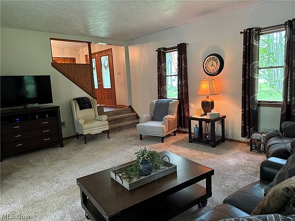 - Description: This large formal living room off kitchen has a large picture window, wood-burning fireplace, and lots of wood left to keep you warm,Flooring: Carpet