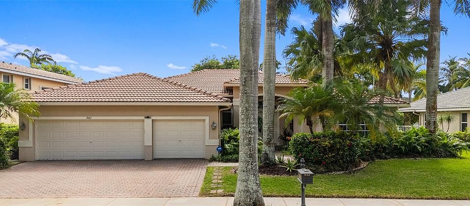 RARELY AVAILABLE IN COVE III – THE ONLY SINGLE STORY HOME CURRENTLY FOR SALE! This beautifully maintained 4-bed, 3-bath SINGLE- STORY home with a 3-car garage sits on a premium lakefront lot. The backyard faces SOUTH with serene lake views from your permitted screened enclosure (2019). Hot tub included (2019) Handmade antique primary bedroom door from South America. Custom Glass work, marble and bamboo flooring throughout. All three bathrooms were updated in 2019. The kitchen features granite counters, wood cabinets and a center island. A/C from 2019. Accordion shutters, sprinkler system runs from the lake. Triple split-bedroom floor plan for privacy. Resort-style community with lots of amenities and A+ schools. Don't miss this chance to live in one of Weston’s most desirable neighborhoods