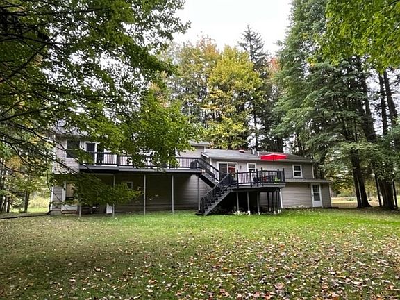 Love country living? This beautiful home comes with over 11 acres, a creek, woods and a 40x56 ft. extra detached heated garage! Can you say Heaven!? This house is unique and can be either a 4-bedroom home with a huge office with a separate entrance, or a 5-bedroom. Large Family Room has space for the whole family plus friends or stay on the Kitchen level that's open to the Living Room with a wood-burning brick fireplace. There is also a sliding door off of the Kitchen and Master Bedroom that leads to a two-tiered deck and beautiful serene view of the creek and the woods. Includes pool table and a small shed with a generator. Wood Stove as extra heat source on the first floor.