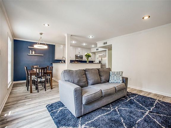 Desirable Lake Highlands area spacious townhome featuring bright Alabaster paint and beautiful new flooring. Open kitchen with granite counter tops, numerous fresh white cabinets, breakfast bar, and newer microwave and range. Warm and inviting living room with French doors and stone, wood burning fireplace. Large master retreat with multiple closets and master bath with jetted tub, separate shower, and dual sinks. Community pool and close to I635, I75, DART, and in exemplary RISD. French doors lead to the freshly landscaped backyard for entertaining. Features a full double car garage.