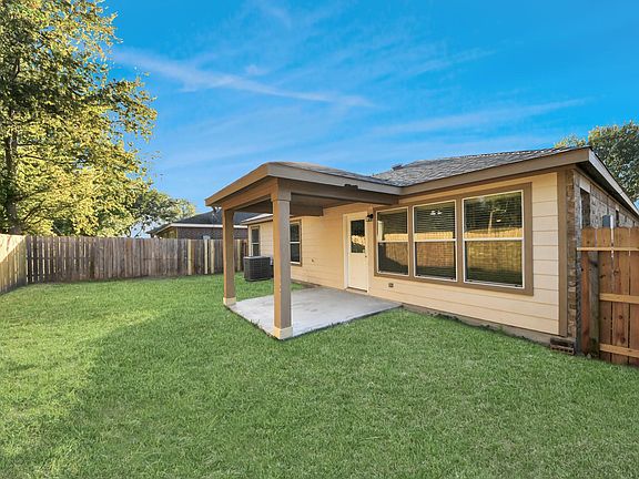 This home offers a well-designed floor plan with three bedrooms and two full bathrooms, featuring living areas that flow from a formal dining room into a family room and a connected kitchen/breakfast area ideal for casual entertaining. The kitchen includes a walk-in pantry and overlooks the breakfast area, while the primary bedroom offers an attached bath with dual vanities, a garden tub, and a separate walk-in shower. Architectural highlights include 9-foot ceilings in select areas, and an open layout oriented toward the backyard. Exterior features include a covered patio with extended concrete space overlooking a spacious fenced yard and a new garage door. The property has new flooring, fresh paint, an updated kitchen with new appliances, and new garage door. Set within a master-planned residential neighborhood with sidewalks, street lighting, and maintained common areas, the property combines comfortable suburban living with convenient access to local amenities.