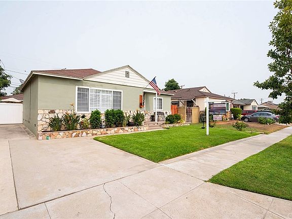 This charming remodeled home features 2 bedrooms, 2 bathrooms and offers a permitted bonus room that can be used as a 3rd bedroom, theater room, or a man/women cave. The home is highlighted with central AC, laminate flooring, an outside patio with an awning, inside laundry area, and recessed lighting throughout. The spacious living room is highlighted by crown molding, and a large window with tons of natural light. The newly renovated kitchen has plenty of quartz countertop space, white shaker cabinets, stainless steel appliances, and an area for dining. Each of the bedrooms are spacious with plenty of closet space, large windows with plantation shutters, carpet throughout and ceiling fans. The bathroom closest to the bedrooms has been upgraded with tile flooring, granite vanity with storage, and the shower with a tub has a beautiful tile backsplash and a shower niche. The second bathroom is located next to the bonus room and laundry area and features a standing shower and tile flooring. The bonus room is a huge plus and perfect for entertaining with direct access to the backyard. It can be made into a third bedroom, a theater room, playroom, or a man/woman cave. The backyard has the detached 2 car garage with a long driveway, large patio area with new stamped concrete and patio. The yard also has plenty of grass for kids and a side concrete area great for a dog run. The home is located near plenty of places to eat and shop on Washington Blvd and close to the 605 freeway.