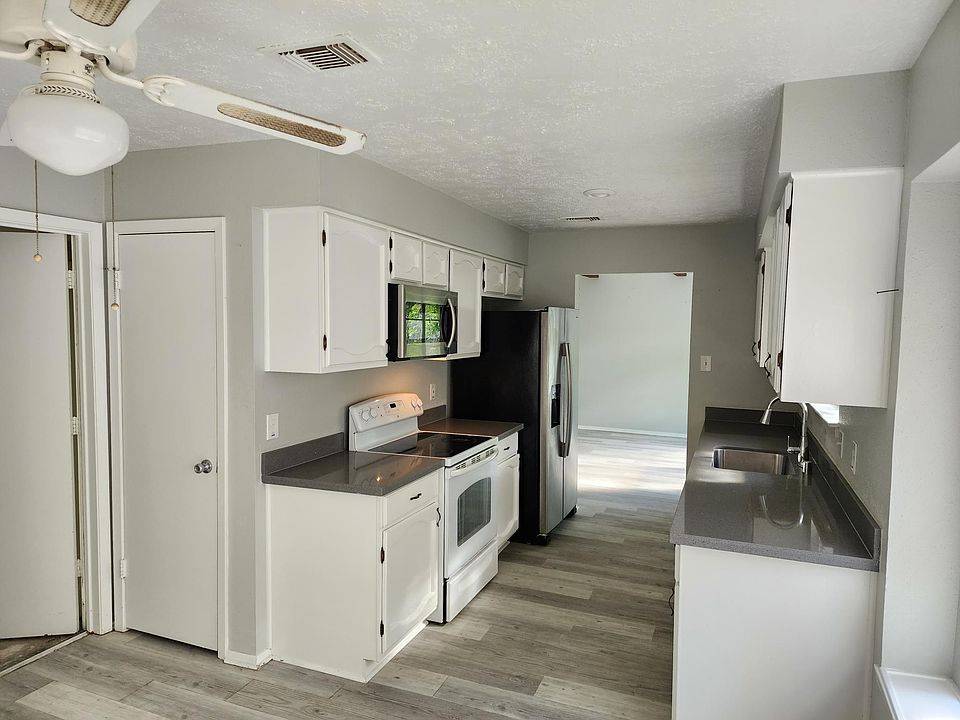 Great house with 3 bedrooms and 2 bathrooms, granite kitchen counters, vinyl flooring throughout. Freshly remodeled. Big backyard. Two car garage with laundry hook ups.