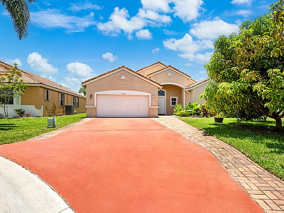 Driveway has capabilities of parking up to four cars!! Four bedroom home in a gated community, which boast of A+rated elementary, middle, and high school. This house has a beautiful lake view in the back with the most beautiful sunset. The AC in only 3 years old, new stove and dishwasher, LG washer and dryer, new wood floors in the rooms, frameless glass door in the main bathroom. Freshly painted!! Did I mention affordable HOA fees!! Several fruit trees, including mangoes & avocado. Extended Florida room! Fenced all around. There is a nice walking path in this community along with a pool, state of the art gym, clubhouse, basketball court and tennis courts that can be converted into pickleball courts!! Come and make this your home.