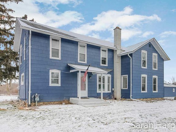 Come take a look at this charming Farm House located in Ada Township. Everything on the main floor of this home as been redone in 2015 - new flooring, paint, both full bathrooms, and a whole new kitchen including appliances. There are 2 full baths on the main floor, as well as the Master Bedroom and laundry. You will have privacy on almost 3 acres, perfect for bonfires and get-togethers in the summer and fall evenings. You will also be close to walking trails for outdoor activities year round. This home comes with a 2 stall garage - the roof was replaced in 2015, and a large storage shed that can also double as a 1 stall garage. *A brand new drain field and 2 new septic storage tanks were put in November 2017.*