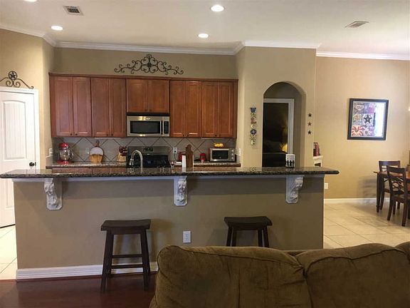 This beautiful custom home in Nederland Schools offers an open floor plan with many upgrades and extra features. Stainless package ,granite counters, long granite island for entertaining , formal dinning, breakfast area, double sinks in guest bath , Built-ins in 4th bedroom that is currently being used as an office , sprinkler system w/timer covering front and back lawns, security system, 12 x 16 workshop in back w/ electricity and window unit , plus extra concrete driveway space for boat or trailer , recessed lighting in living room , wooden deck for backyard , 12 x 16 shed was built in 2011 per seller, double fenced doors for entrance to backyard. Great for entertaining.