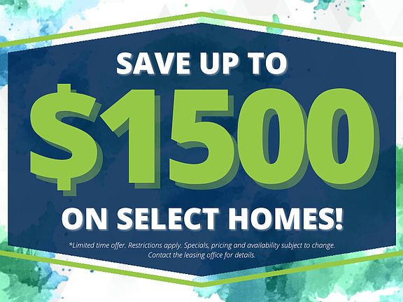 - Special offer! Save up to $1500 on select homes! *Limited time offer. Restrictions apply. Specials, pricing and availability subject to change. Contact the leasing office for details.