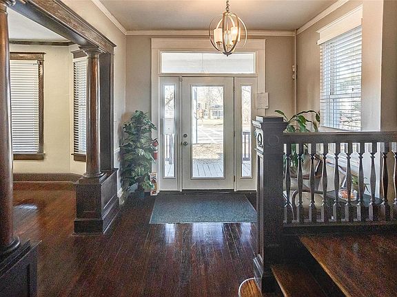 Built in 1900, This charming 3 bed, 2 bath home offers glimpses of the beauty of its original construction w/ updates & modern amenities you are sure to love. Whether you are sipping coffee on the covered from porch or staying warm in the living room by the cozy wood burning fireplace w/ period tile inside, this home is will delight you. The main floor features large original moldings, original wood floors in spaces, a spacious living room, formal dining room & updated 3/4 bath. Kitchen was renovated in the last 10 years featuring lovely cabinetry & appliances that stay. Just up the beautiful wood staircase you will find 3 bedrooms flooded with light, fresh carpet, and a bathroom with updates. Fresh paint, new carpet, fresh landscaping, new water heater & ample parking await you. This home is already passed city occupancy for residential and commercial. Offering 1900+ sqft, w/ great proximity to downtown St. Louis & close to all that Belleville has to offer.