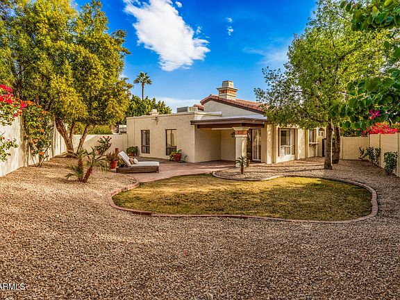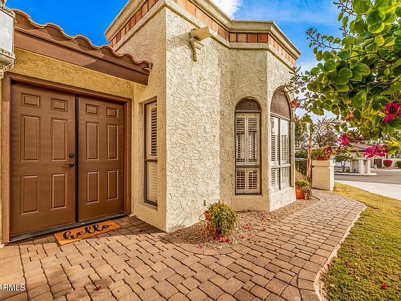 Welcome Home! to your brilliant, warm and cozy private retreat in the heart of Gosnell's jewel, the stunning Pointe South Mountain community! This is a rare DETACHED Garden Home. You'll fall in LOVE before you even enter this beautiful haven, nestled on one of The Pointe's quiet and friendly cul-de-sacs... The Spanish and Mediterranean-inspired architecture is renowned for its unique floor plan and appointments including an INTERIOR ATRIUM illuminating the Primary Suite and living spaces...Followed by 2 separated bedrooms, the inviting den/family room, breakfast bar and the striking signature Gosnell Kiva fireplace! Enter to find a formal living & dining room under vaulted ceilings adding to the airy feel. The gorgeous plantation shutters give a richness to the natural light coming in everywhere... The bright, open kitchen boasts SS appliances, ample cabinetry, a built-in bar area, and two pantries. The double-door entry to the Primary Suite reveals the atrium's French Doors followed by private bath with dual sinks, separate tub/shower, & a walk-in closet. Spend your afternoons in calming, serene resort-like privacy in your big, beautiful backyard showcasing a covered patio, lawn and green nature surrounding. The large 2-car garage offers direct entry to the home, a separate storage area and separate exit/entrance to side yard.