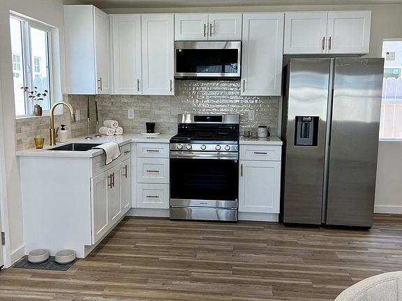 Everything is NEW: paint, floors, tile, and appliances, home shows fantastic. Home is rented complete with appliances: new stove, new microhood, new French door refrigerator, washer, & dryer. Great neighborhood, walking distance to schools, shopping, and all the entertainment you can handle.