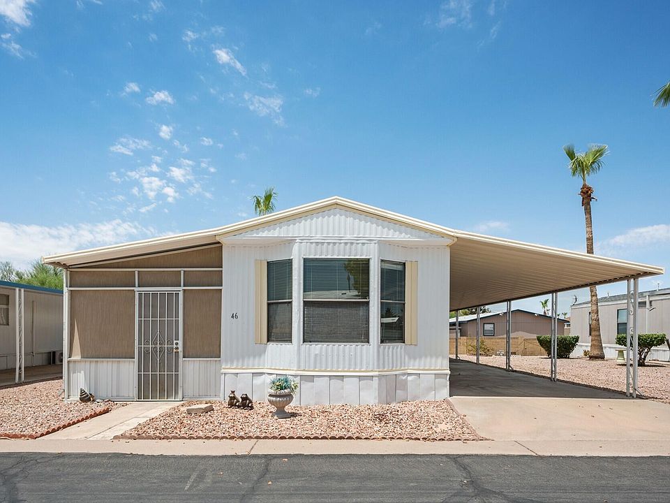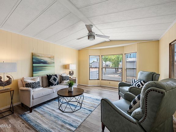The bathroom includes a walk-in shower with grab bars for added safety, and the fully enclosed Arizona room provides the ideal spot to enjoy your morning coffee or evening glass of wine. This pet-friendly community (with some restrictions) offers an impressive array of amenities: a heated pool, spa, clubhouse, shuffleboard, recreation room, dog park, and even RV parking.