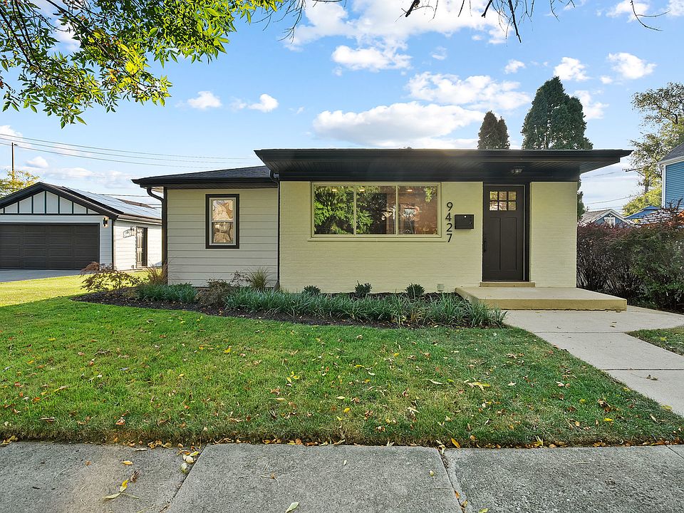 Remodeled in 2025, this 4-bedroom, 2-bath split-level home is located in historic Beverly on a quiet, tree-lined street surrounded by well-kept homes. Set on an oversized lot, the property includes a rare side addition adding to its size and main floor functionality, a concrete side driveway, and a 2-car detached garage. The expansive green space adjacent to the garage is all yours-perfect for entertaining, gardening, pets, and outdoor enjoyment. The exterior features a striking mid-century modern style with painted white brick and white LP Smart siding. Inside, the semi-open floor plan offers a spacious living room with an accent wall, LED can lighting, and wide plank flooring accented by tall sleek trim. The large dining room opens to the backyard and flows into a stunning white kitchen with abundant cabinetry, quartz countertops with matching backsplash, stainless steel appliances, and black hardware. A separate breakfast nook with a dry bar and wine fridge completes the space. The upper level includes three bedrooms with refinished hardwood floors, ample closet space, lots of windows, elegant lighting, and fresh paint. The upper bathroom is designed with clean, modern lines featuring a floating vanity with quartz waterfall counters, a porcelain surround bathtub, and contemporary vanity with hardware.The lower level, accessible from both the kitchen and side entry, is filled with natural light and showcases a fourth bedroom, a family room, a stylish full bathroom with a walk-in glass shower, and a spacious laundry room with side-by-side washer/dryer and sink. A modern one-piece glass banister adds to the home's sleek aesthetic.Energy efficiency is a highlight with a fully paid-off solar panel system (yes owners have been enjoying the $20/month electric bill), tankless hot water heater, and central heat & A/C. The private fenced yard enhances outdoor living. Perfect location for commuters. Located just two blocks from the Beverly Hills Metra and public transit, this walkable and bike-friendly neighborhood offers convenient access to restaurants, craft breweries, Evergreen Plaza, Whole Foods, Jewel, and Mariano's. Excellent nearby schools include Kellogg and Montessori options. Beverly Arts center, several architectural gems, and The 257-acre Dan Ryan Woods with sledding and snowboarding hills, historic aqueducts, fitness stairs, picnic groves and a mile-long paved loop that connects to the Major Taylor Trail with a large array of native plants, animals and migratory birds. Easy access to I-94 and I-57 makes commuting a breeze. VA, FHA, Conventional Loans & Cash accepted.
