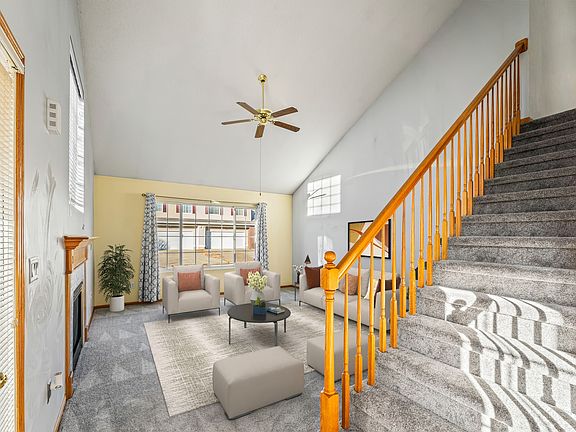 Located in the heart of Johnston, near both Horizon Elementary and Summit Middle School sits this charming townhome with ample living space and character. Stroll up the walkway to an inviting front door with attached patio space, a great spot for a morning cup of coffee or a rocking chair to enjoy the corner lot. Step inside to the main floor which includes a large living room with new carpet, vaulted ceilings, large windows with natural light, and a fireplace. Just off the living space is the dining room with slider access to the front patio, perfect for grilling or entertaining. The large galley kitchen is just off the attached, two-stall garage for convenience, and it includes brand new stainless appliances and is open to the dining area. Upstairs are two bedrooms with new carpet, including the master suite with dual closets, vaulted ceilings, and an attached bath with a large vanity. The second bedroom also includes its own full bath, making it a perfect space for kids, guests, or a roommate. The full basement of this home is open and dry, ideal for setting up an office, gym, or for extra storage. This home is low maintenance, move-in ready, and in a prime location. Schedule your showing today.