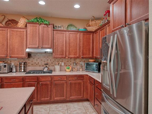 DROPPED PRICE! MOTIVATED SELLER! Beautiful coral hued 2/2/2 with golf cart parking in desirable Windsor West community. Home has oversized backyard, Tuscany styled patio for outdoor enjoyment, an enclosed lanai and courtyard for year round use. The 2 car garage features overhead storage, a dedicated plug for golf cart and a water softener system that can use potassium pellets instead of salt to help control salt intake for diet restrictions. The house has solar panels that greatly offset electric bills. The home features an inside laundry room with sink and cabinets for extra storage space. On Top of the World offers many activities and amenities. There is dedicated bus service for those who do not drive. You can also go to 3 shopping areas on your golf cart.