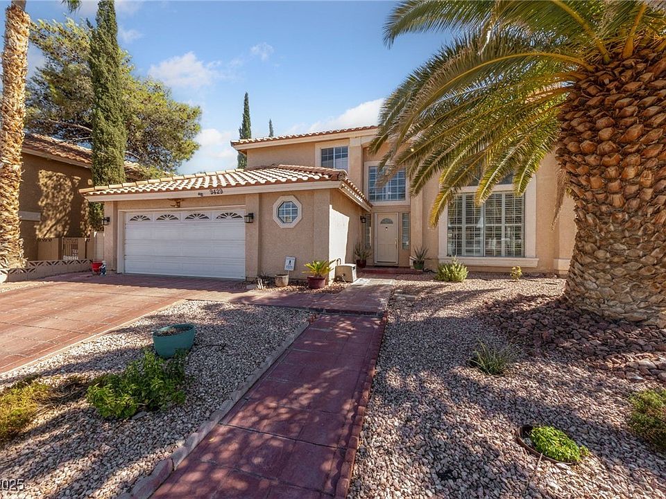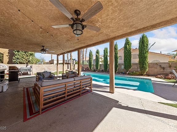 Welcome to this beautifully maintained two-story single-family home at The Lakes. Step inside to discover elegant plantation shutters throughout, enhancing both style and privacy. The open-concept kitchen is a true centerpiece featuring granite countertops, stainless steel appliances, and a layout that flows seamlessly into the spacious living and dining rooms. In the master bath, unwind at the end of the day with a relaxing soak in the tub. Outside, escape to your own backyard sanctuary: a true oasis featuring a sparkling pool, covered patio, and beautifully landscaped space designed for both relaxing and entertaining. Located just minutes from downtown Summerlin, with quick access to freeways, shopping, dining, and more, this home offers the perfect blend of comfort, style, and convenience. Don’t miss your chance to own this stunning gem, move-in-ready home with resort-style outdoor living! *A/C Furnace replaced in the last 3 years.* SELLER OFFERING $10K TOWARDS BUYER CLOSING COSTS!