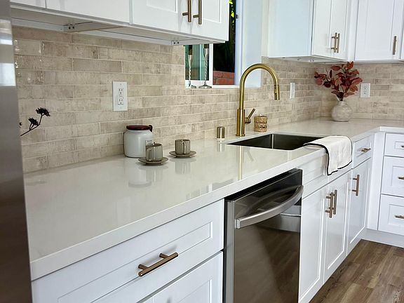 New, designer kitchen, designer bathrooms look elegant, ample exterior space with grass, wood floors, great space for entertaining, stainless steel appliances, washer & dryer, stone tops throughout and lots of space! Ready to move in today! Very nice & highly desired neighborhood.