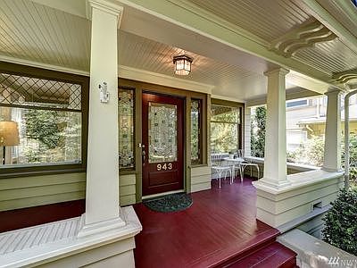 1909 Craftsman beauty situated high off the street in leafy, sylvan setting. Level entry from double garage accessed from alley. Welcoming front porch & gorgeous stained-glass entry. Gracious spaces and ambient light. Period detailing throughout: 9.5' ceilings w/crown moldings, top-nailed oak floors w/mahogany ribbon inlay, leaded windows. Stunning cook's kitchen w/quartz countertops, Viking, Lacanche, Thermidor, & Bosch. Lower level w/separate entry. Magical garden patio areas. Extraordinary!