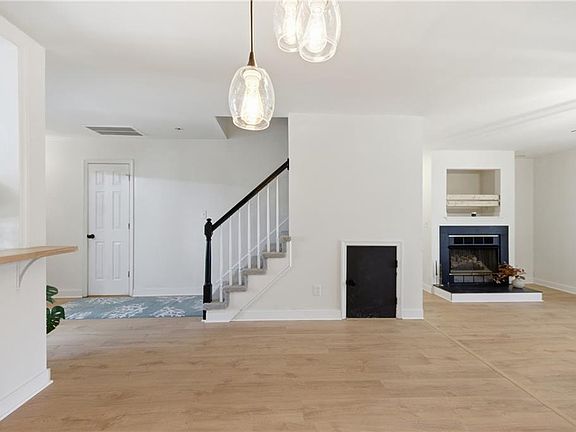 Natural gas fireplaceAdditional under-stair storageDeck overlooks the lakeBright eat-in kitchenStainless steel appliances