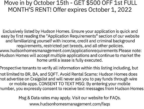 - Included: Dishwasher, Range / Oven, Refrigerator