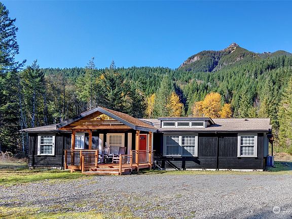 Butter Peak View home on 9.70 acres! Seasonal creek runs through and just a short 1/4 mile to Gifford Pinchot National Forest. Spacious 2,508 sq ft, fully furnished & updated home with covered entry porch and covered rear deck with seating area and propane firepit . Take in the mountain view from the oversized primary suite with walk-in closet and private jetted tub. Enjoy the large kitchen with room for entertaining and a walk-in pantry. Sit back, relax and stargaze from the inviting hot tub or covered fire pit. Property includes a detached, 1,800 sq ft shop with 30 & 50 amp RV hookups. Successful, highly rated, short term rental!