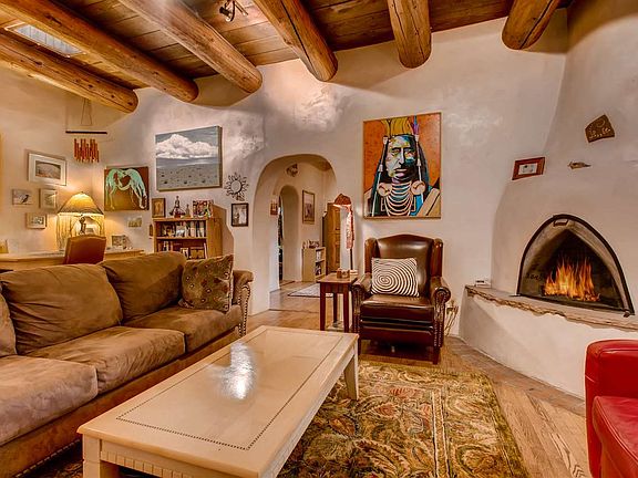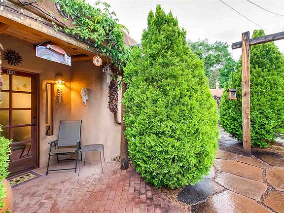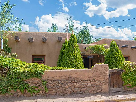 Location, Location, Location!! This charming Historic Eastside adobe sits proudly on Santa Fe's world renowned Canyon Road near restaurants, galleries, Patrick Smith park and more. You'll feel the preserved historic flavor immediately upon entering. It has been meticulously upgraded and cared for with high viga ceilings, brick, tile and wood flooring, kiva fireplaces and a gorgeous yard and garden area with fruit trees and evergreens creating serene privacy. There is a cobblestone driveway with 2-car designated parking. Zoned RAC. Electricity is supplied by solar photovoltaic with public backup. This is truly a must see property.