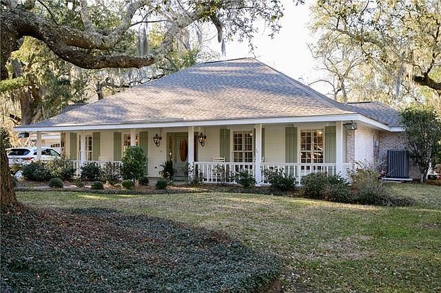 This lovely home is surrounded by 5 Majestic old live Oak trees. home was renovated in 2021, loaded with amenities, if you like to entertain your family and friends this is the house. Den and kitchen are very open with high ceilings, floorings through out the house are Brazilian wood, ceramic and marble. Large windows across the back of the house for a lot of light. Kitchen has added appliances like ice maker & wine cooler, pot filler over 36" S.S. gas range, this kitchen is a Chef's dream kitchen. Primary Bathroom floor is heated. Primary bath has a waterfall floor new concept. No more shower doors or glass to clean. Come see all the amenities that fills this home. All of this surround by beautiful Landscaping. Walk- In Attic. Yard fountain stays. All TV's and hangers are excluded from sale. Beau Chene HOA. bchoa.org
