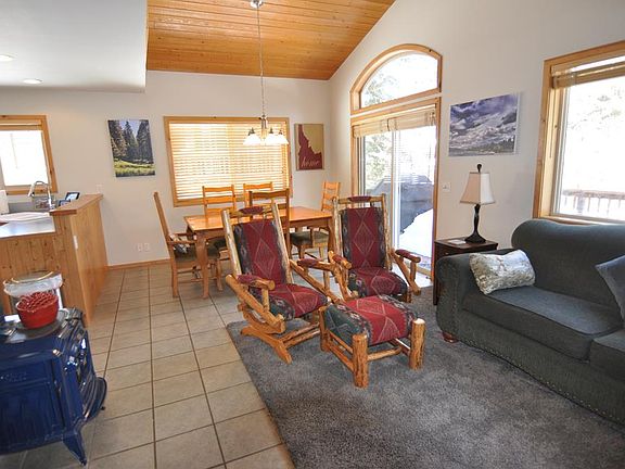 Beautiful cabin retreat for adventure & mountain living in desirable Spring Mt Ranch. Owned by Air BnB super-hosts, this property served as a 2nd home while also generating an impressive income stream. 2 bed/2bth w/an enormous deck overlooking forest inside the McCall Golf Course. Inside are tile floors & a comfortable layout around a wood burning stove. Open floor plan on the main level with kitchen/dining/living area plus bedroom & full bathroom. Upstairs is a loft/TV room plus master suite. Most furniture/furnishings may be included with a full price offer. Fabulous location a mile from Payette Lake, Ponderosa State Park & downtown McCall. Next to the clubhouse with pool, hot tub & workout room. City bike path across the street. Enjoy the birds & wildlife in this lovely wooded setting.