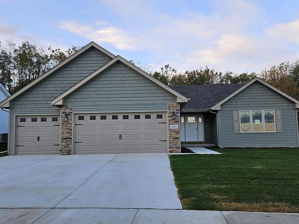 COMPLETION OCT 2024. 1803 SQ. FT. OPEN CONCCEPT SPLIT BEDROOM, GREAT ROOM WITH FIREPLACE. KITCHEN WITH RANGE, DW AND MICRO. PRIMARY BEDROOM WITH PRIVATE BATH. BASEMENT 3-CAR GARAGE LOT 55