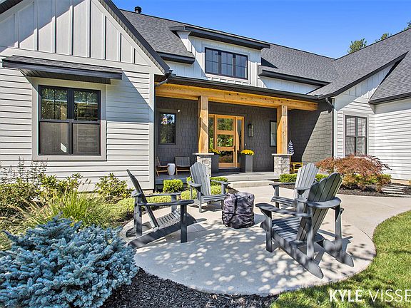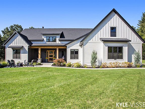 Welcome to this stunning newer construction in Forest Hills, ideally situated just moments away from Seidman Park, Downtown Ada, schools, and dining. This 4-bed, 4 bath home plus study offers open-concept living on the main floor, featuring an elegant and moody dark kitchen with custom solid hickory cabinets, a large island, and modern lighting. The first floor boasts a lavish master suite, with heated tile throughout the entire primary bath, and an additional bedroom, while upstairs you'll find two more bedroom suites, a versatile loft, and extra laundry. Main floor conveniences include a laundry room and office. Plus, over 2000 sq ft of unfinished basement, ready for your custom design. Nestled on 2 acres, the property offers a vast open area and serene woods at the rear. Experience the pinnacle of luxury living, seamlessly merging convenience with the serenity of Ada's natural beauty.
